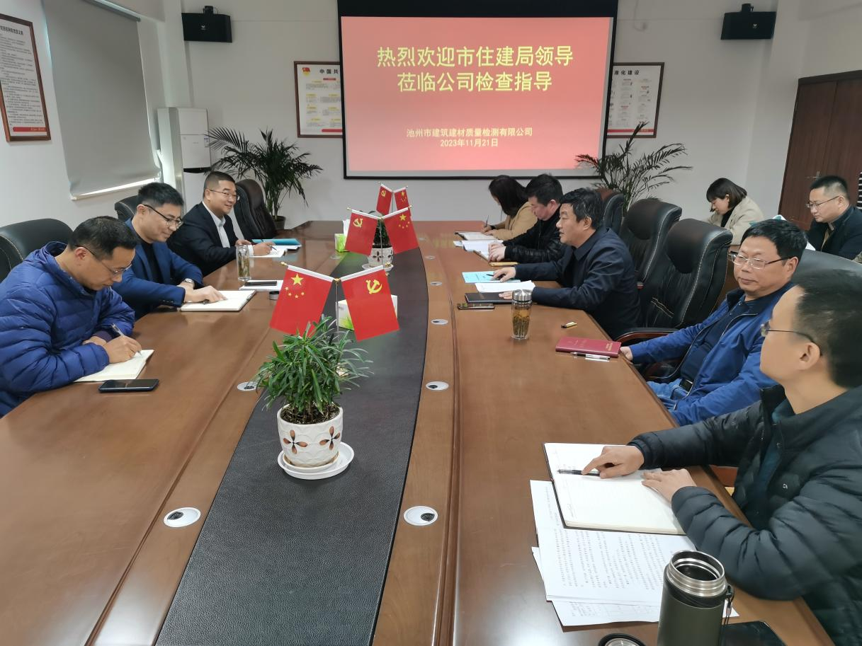 11月21日下午,市住建局副局長洪磊一行蒞臨池州市建筑建材質(zhì)量檢測有限公司開展調(diào)研,檢測公司領(lǐng)導(dǎo)班子陪同調(diào)研。