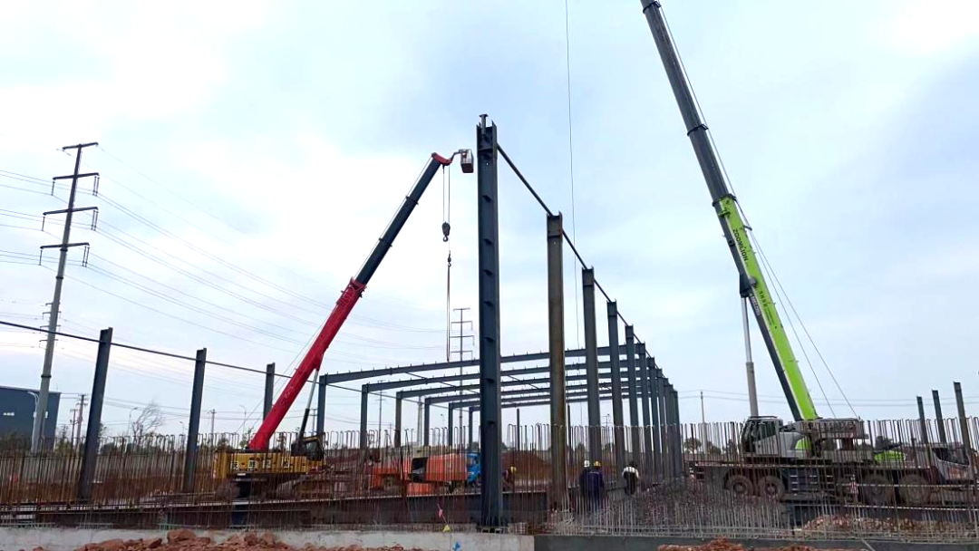 公用型保稅倉(cāng)庫(kù)項(xiàng)目于2023年12月初正式開(kāi)工建設(shè),項(xiàng)目建成后主要提供各種有色金屬及大宗散貨礦產(chǎn)品的倉(cāng)儲(chǔ),報(bào)關(guān),報(bào)檢,報(bào)稅及物流配送等服務(wù)。復(fù)工以來(lái),全體工作人員精神飽滿,拿出了開(kāi)工即決戰(zhàn)、起步即沖刺的精神狀態(tài)投入到項(xiàng)目施工中。目前保稅倉(cāng)庫(kù)鋼結(jié)構(gòu)鋼柱鋼梁已搭設(shè)完成,其附屬設(shè)施中制樣間、地磅棚、沉淀池基礎(chǔ)筏板等基礎(chǔ)設(shè)施已基本完成。商發(fā)公司將掛圖作戰(zhàn)、打表推進(jìn)公用型保稅倉(cāng)庫(kù)項(xiàng)目建設(shè),確保項(xiàng)目早建成、早投運(yùn)、早見(jiàn)效。